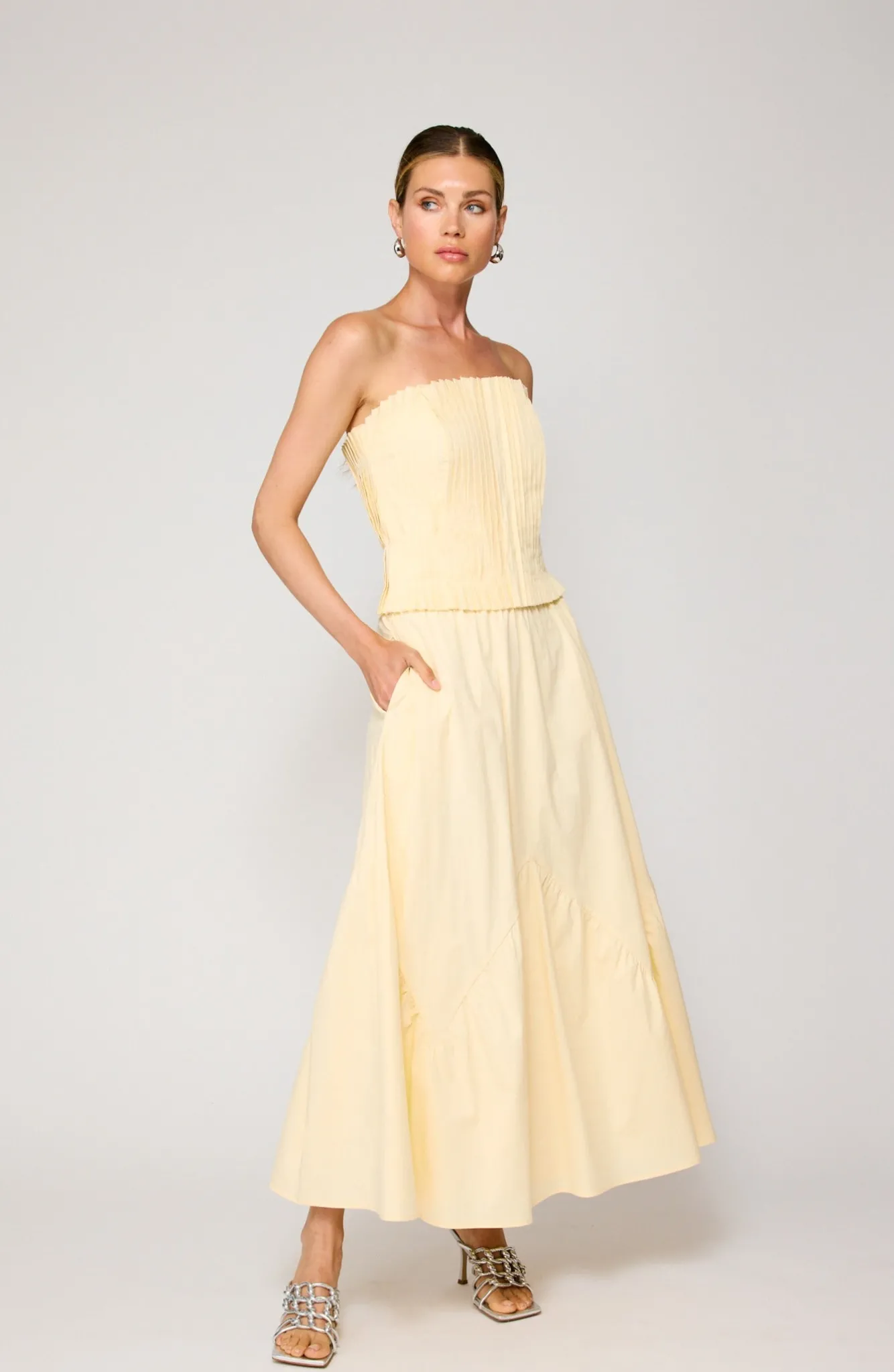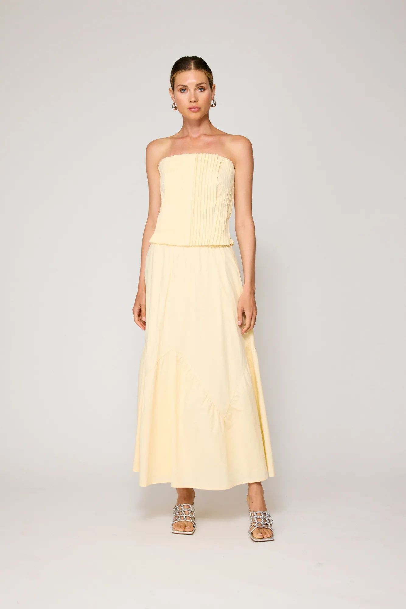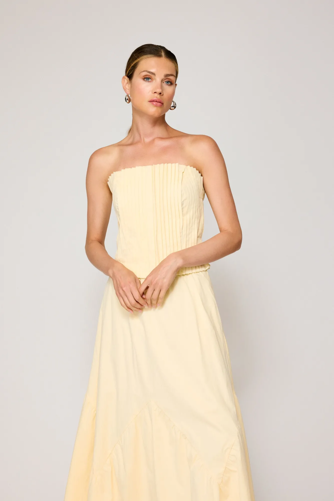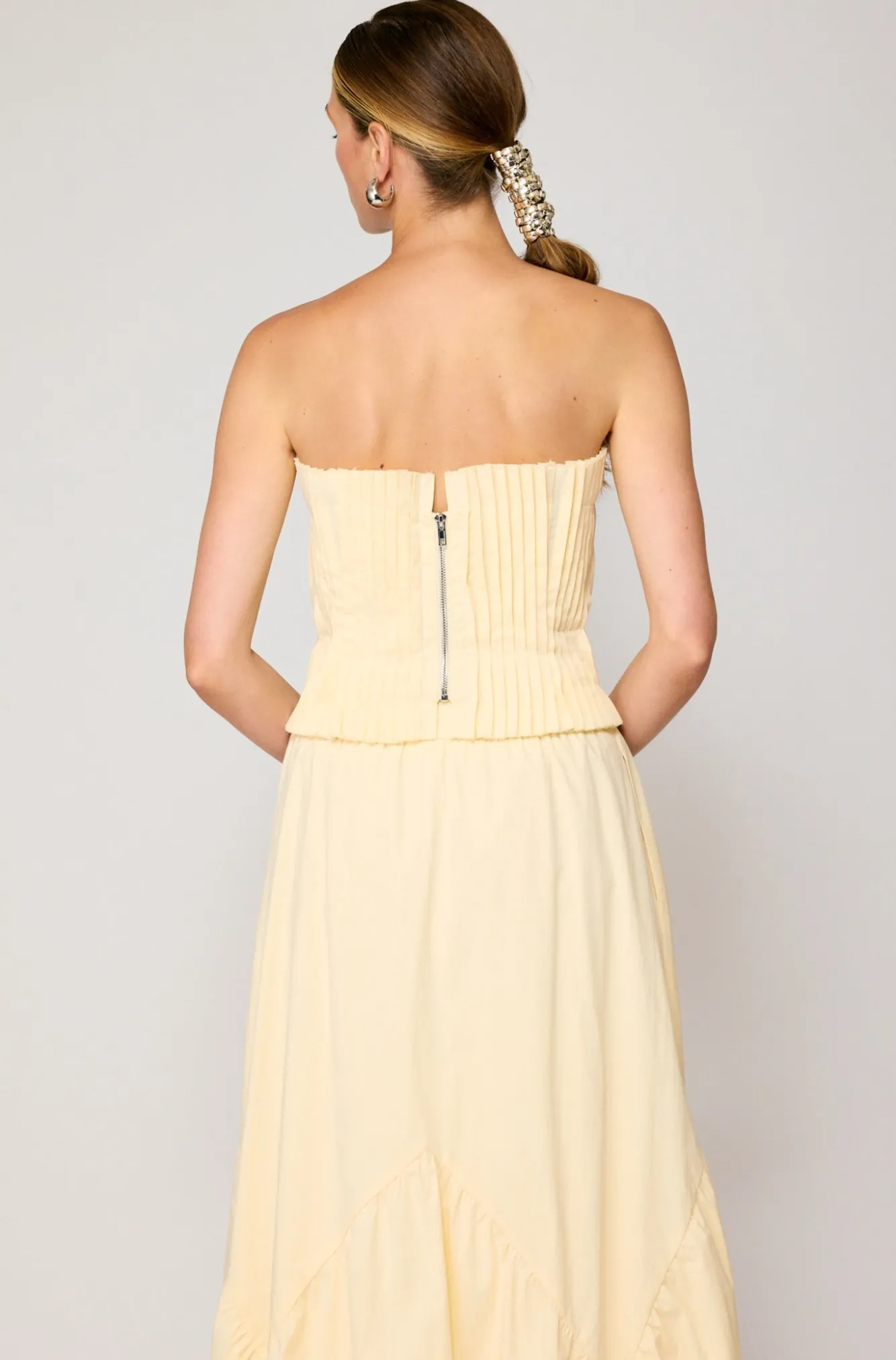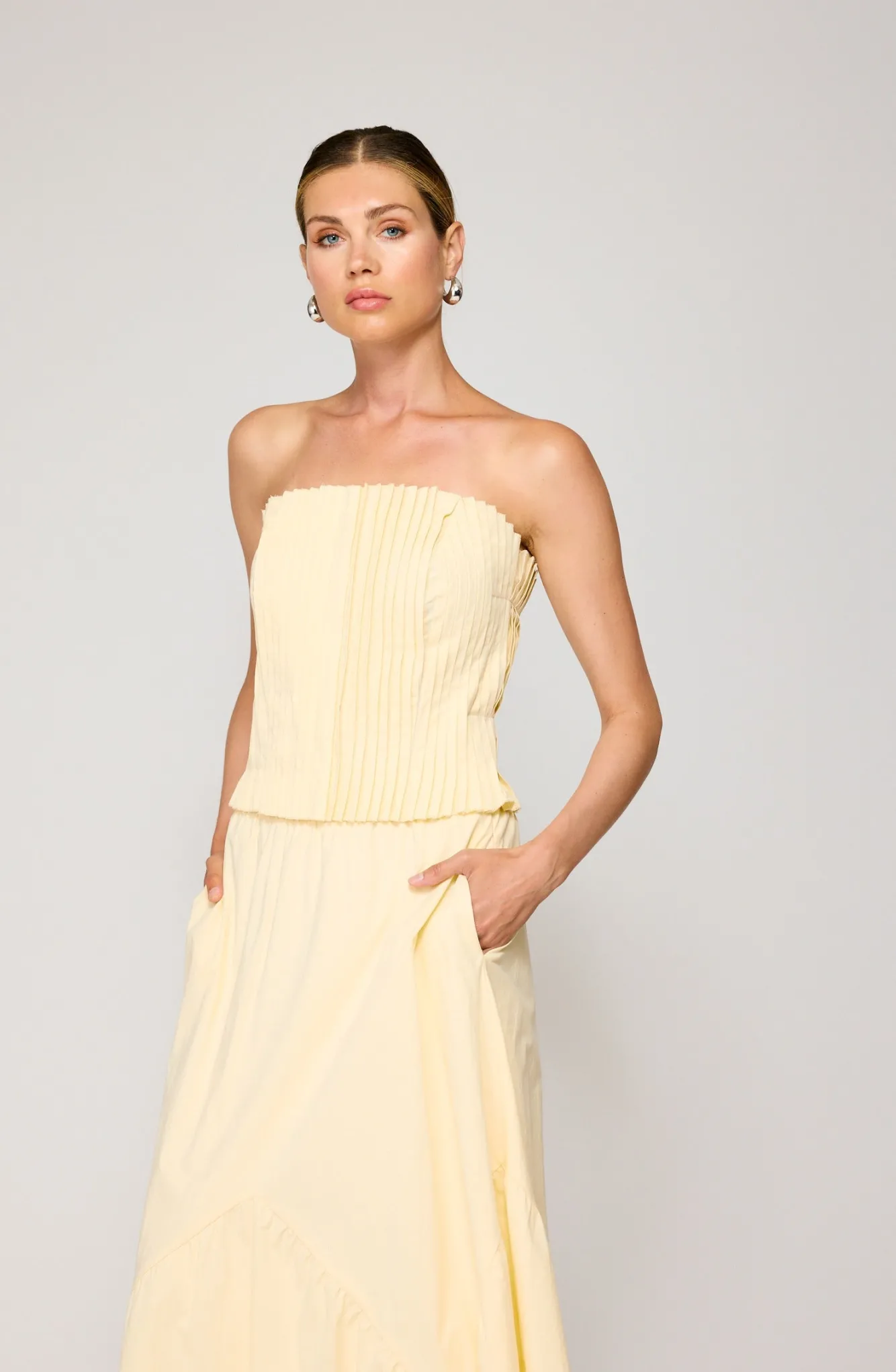 – Light-weight poplin with stretch- Pleated detail- strapless- Boned bodice with non-slip rubber binding- Zip at back