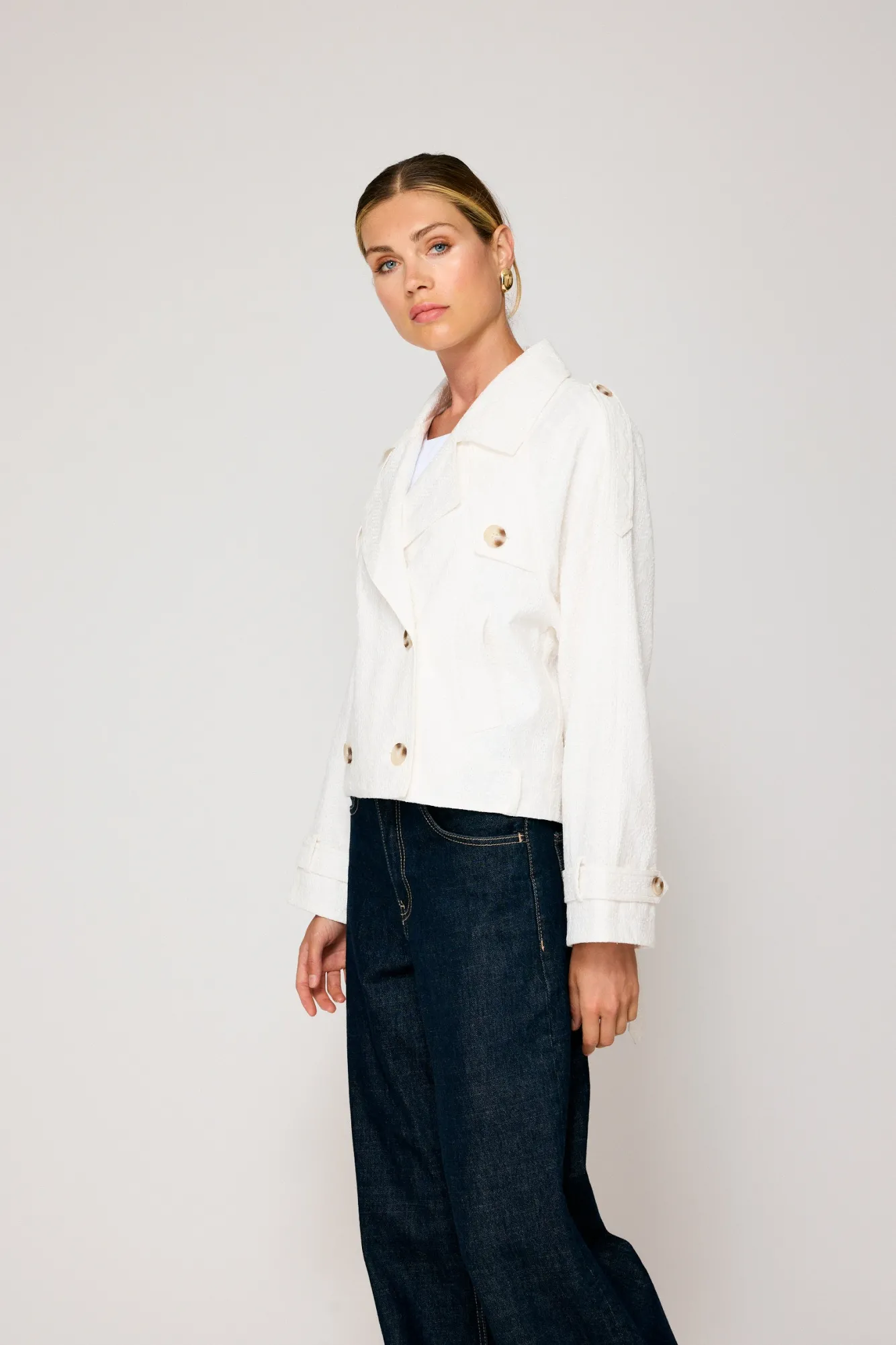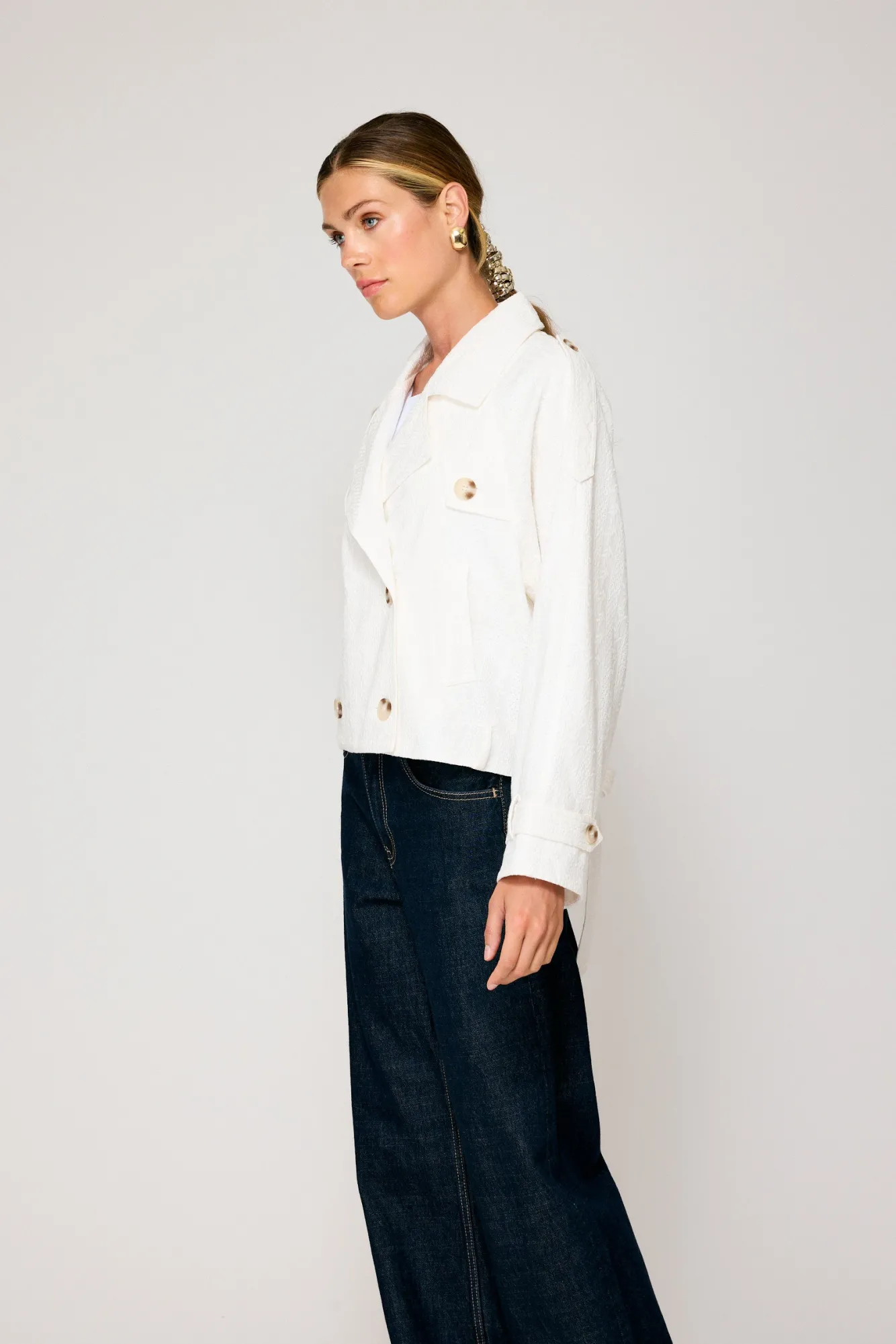 – Mid-weight, non-stretch cotton lace-Shoulder epaulettes-Collared neck-Long raglan sleeves with button cuffs-Double-bre…