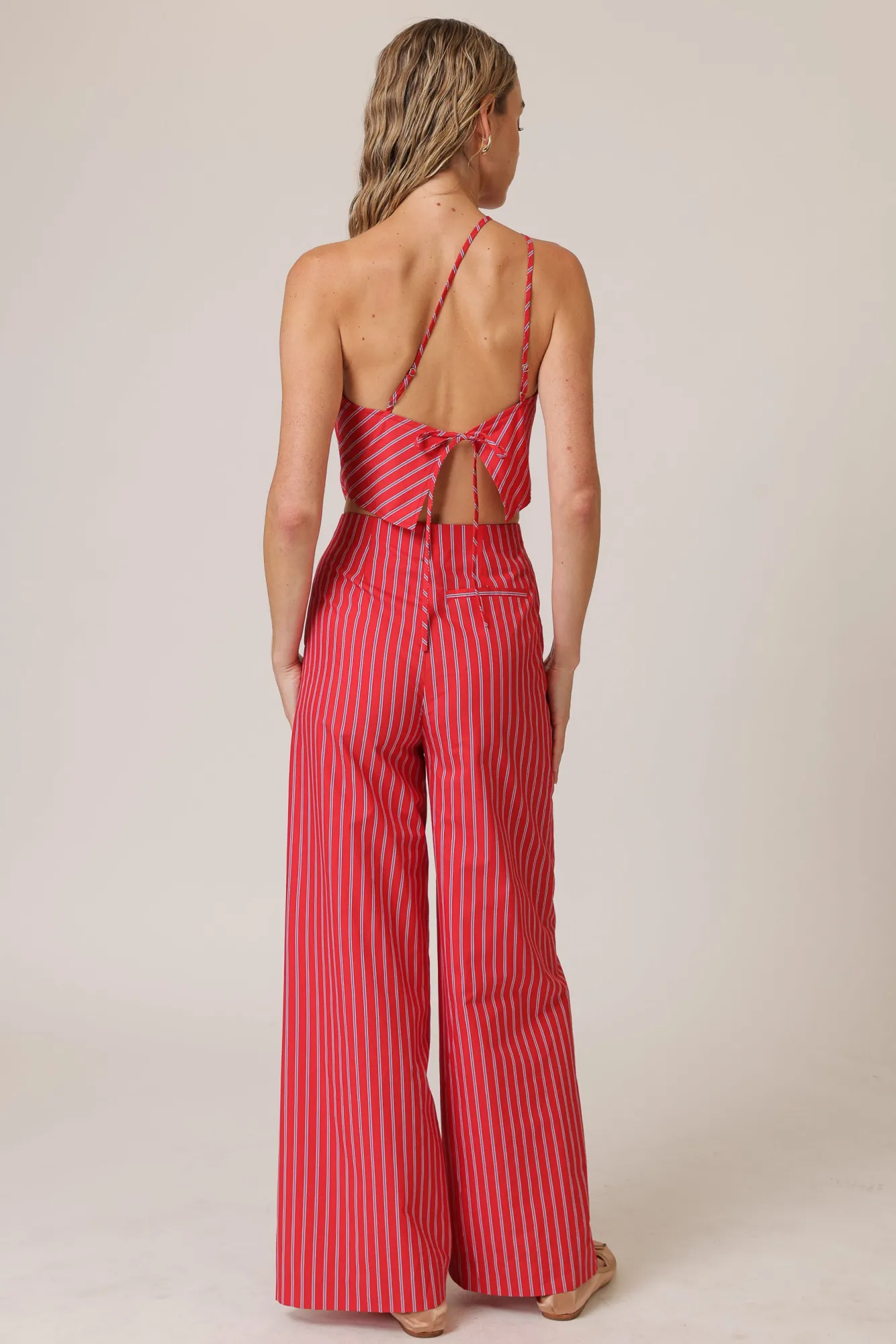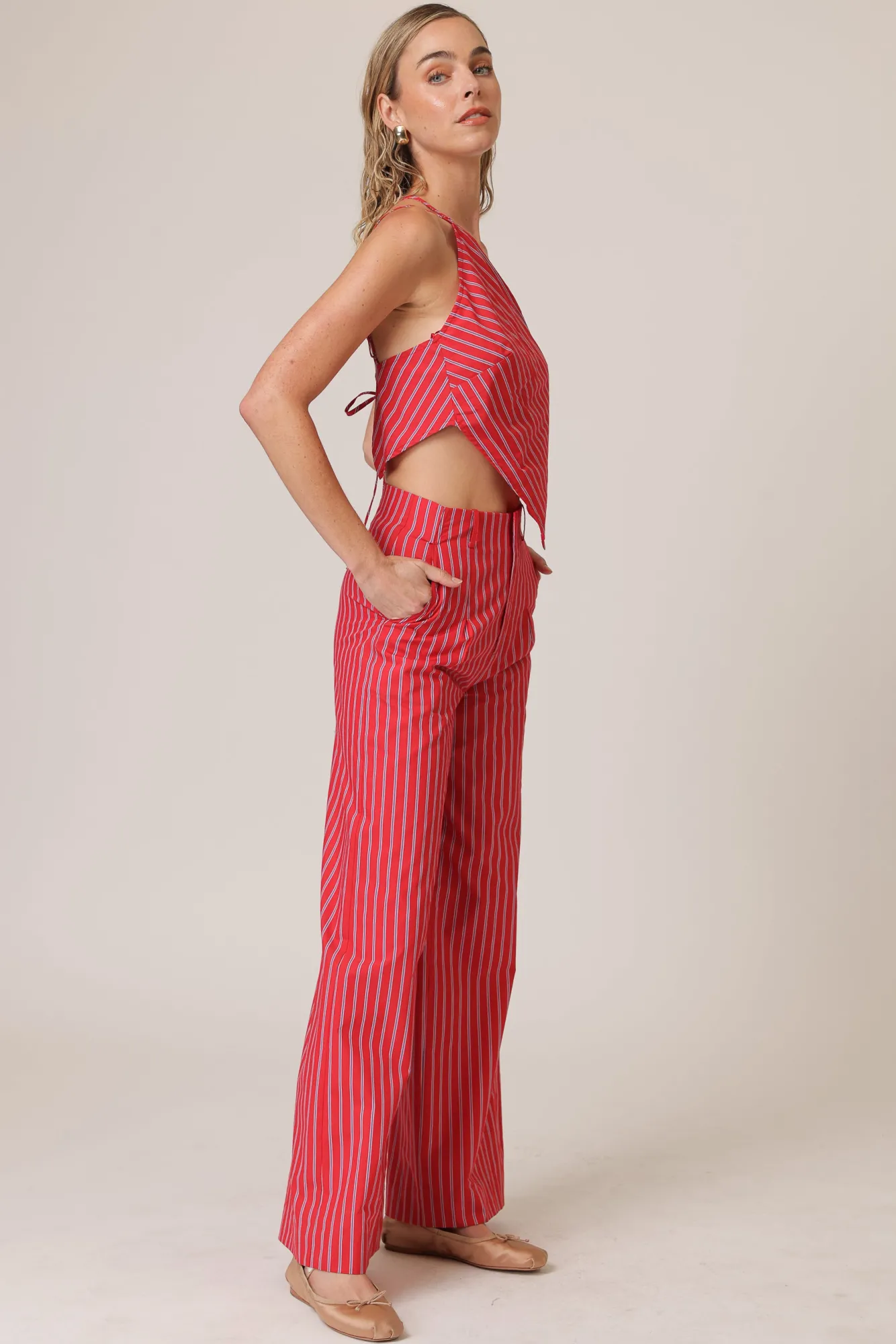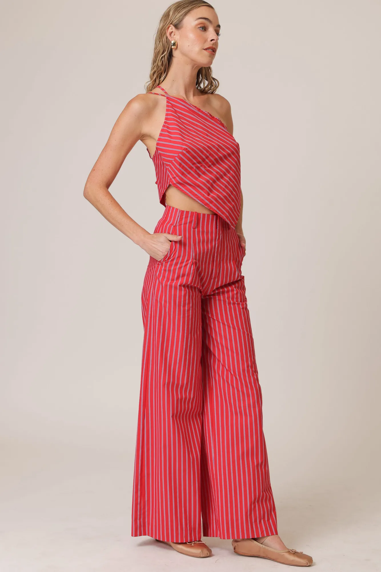 – Mid-weight poplin- Striped pattern- Zip fly with hook and bar clasp closure- 3-pocket design- Wide-leg fit- LinedModel…