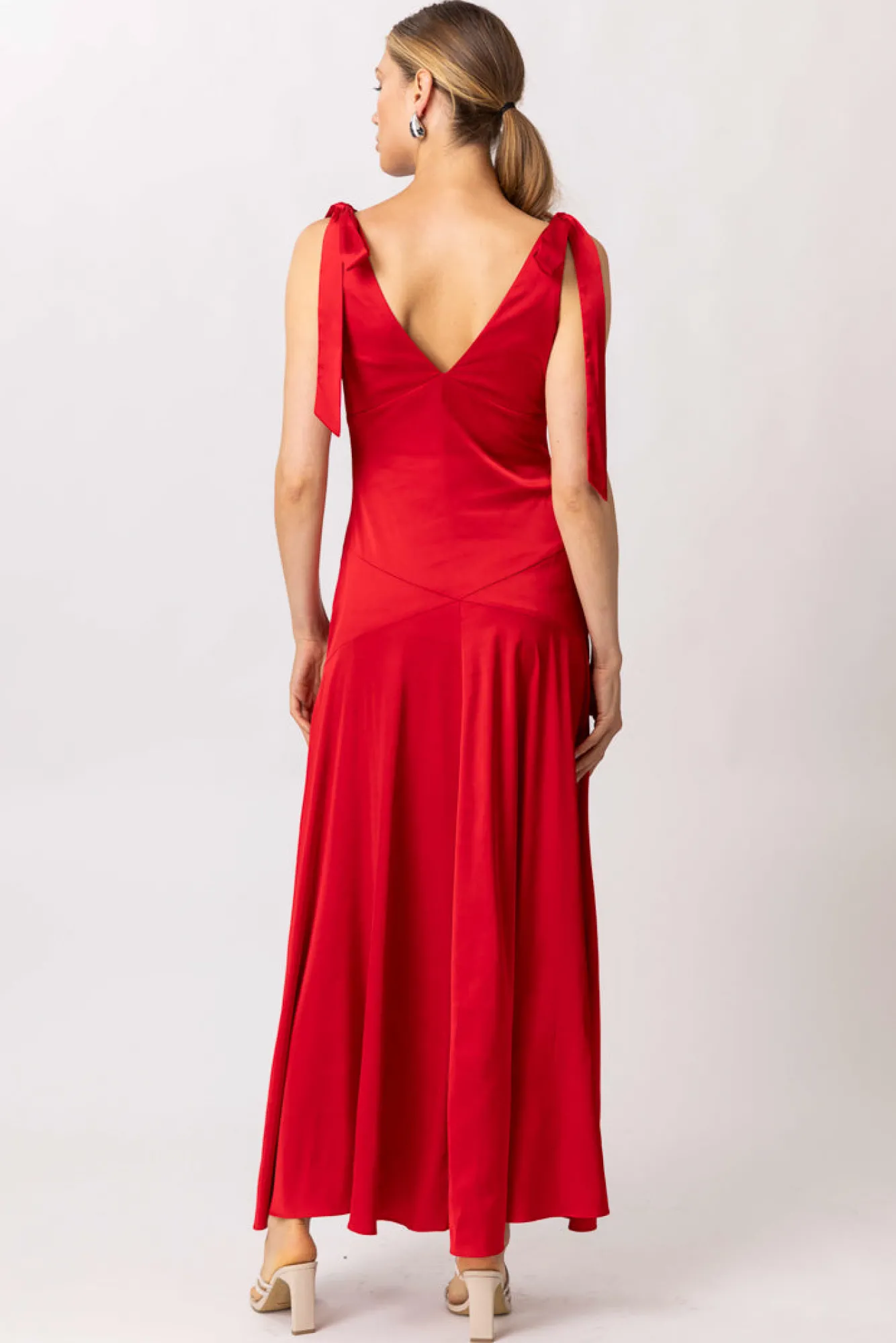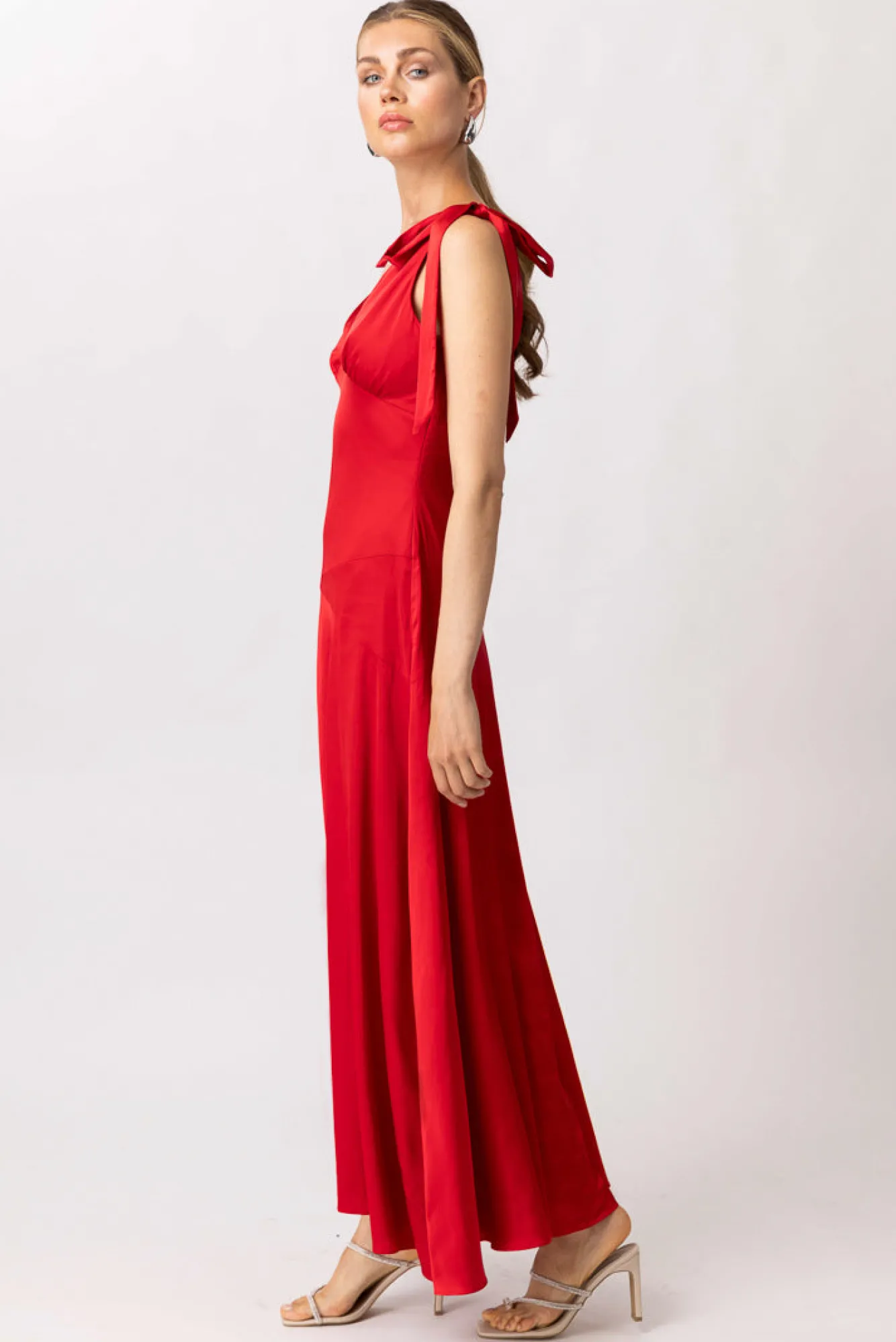 – Light-weight satin fabric with little stretch- Sleeveless- Self shoulder tie detail- V-neckline- Fully lined