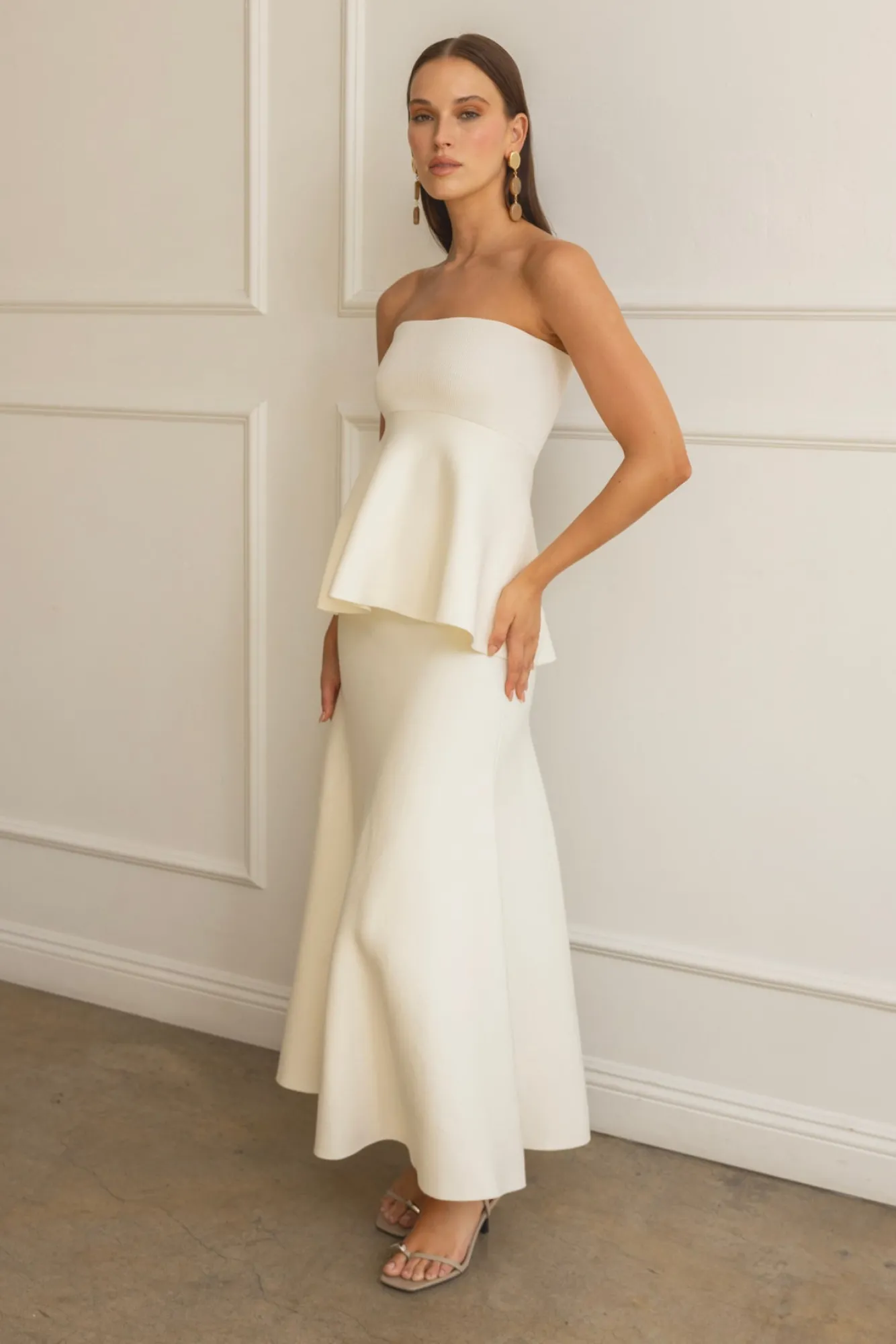 – Mid-weight rib knit sweater fabric- Strapless- Sleeveless- Peplum design- Pullover design, no closureModel measurement…