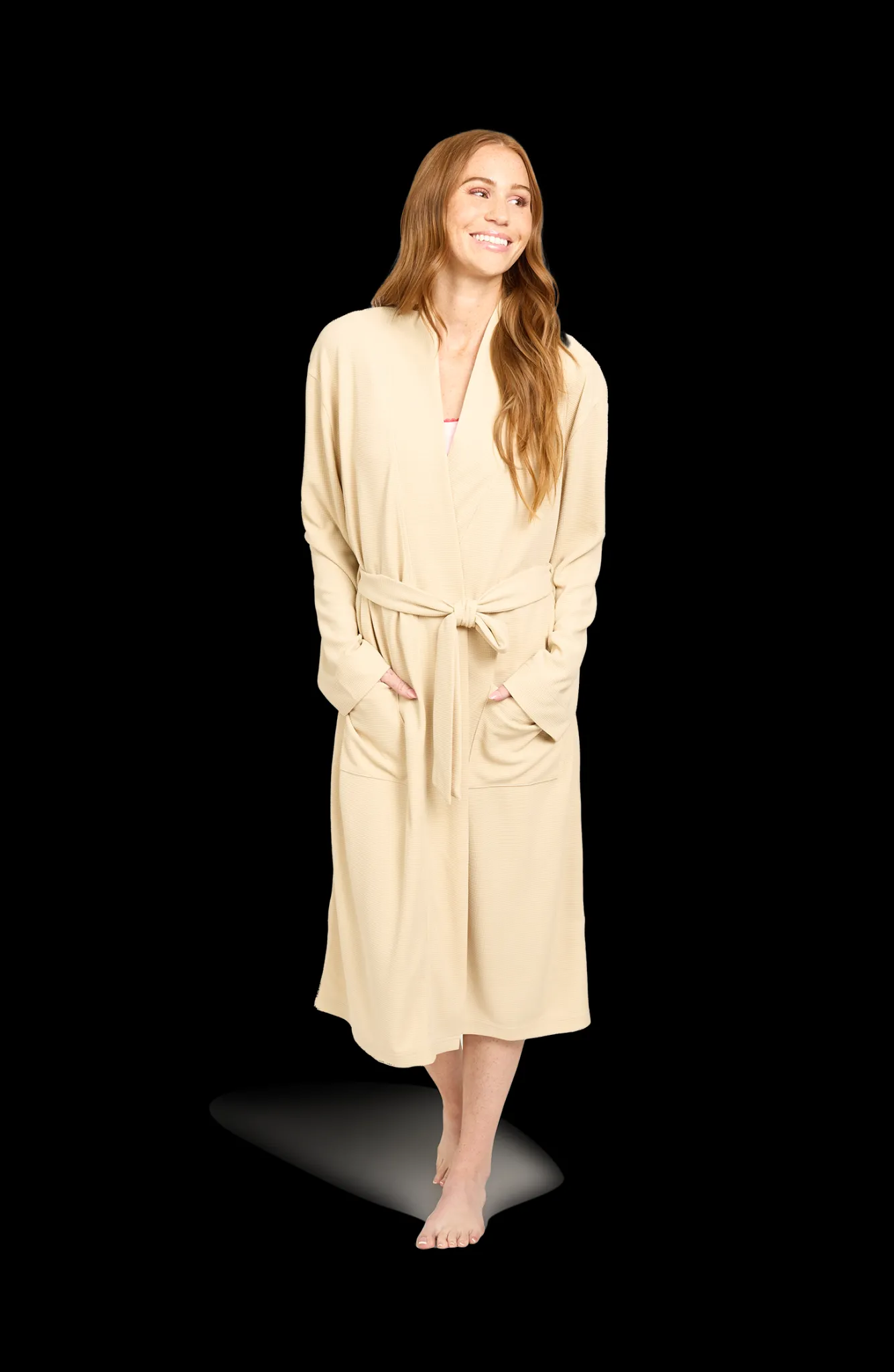 Cozy up with this robe post shower or while getting ready! Features a waffle knit texture and self tie belt.